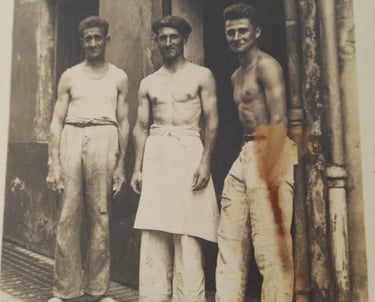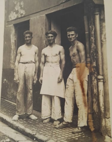 Mon Aitatxi (grand père) au milieu devant le fournil à Hendaye