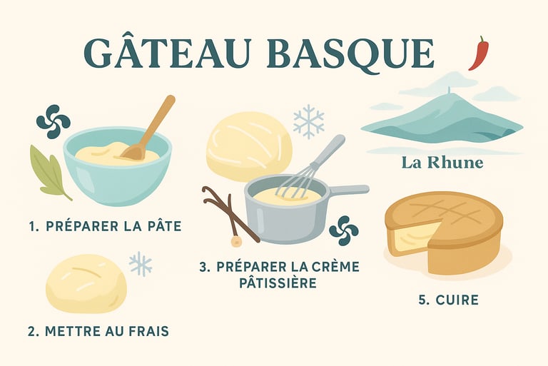 Le vrai goût du Pays Basque se cache dans une pâte dorée, une crème moelleuse et un tour de main transmis depuis des générations Découvrez ici la recette authentique du gâteau basque, expliquée pas à pas — un voyage entre tradition, douceur et savoir-faire artisanal.Ce dessert est plus qu’une gourmandise : il incarne un art de vivre.