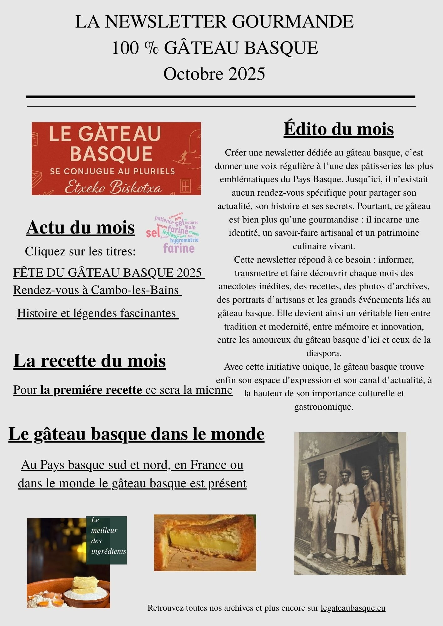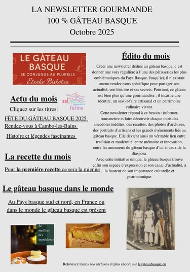 Que vous soyez passionné de gastronomie basque, touriste de passage ou simple curieux, cette page vous permet de rester connecté à l’univers vivant et savoureux du gâteau basque.