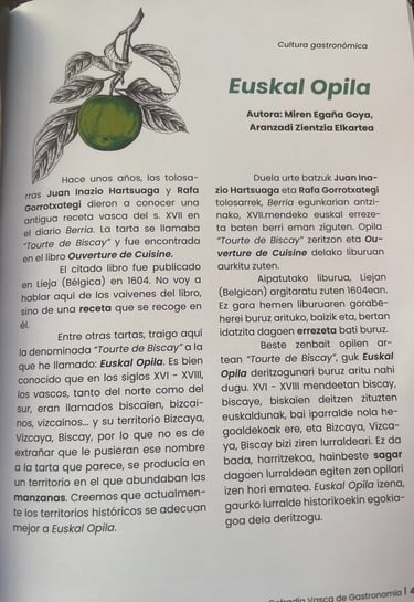Certains chercheurs y voient l’un des plus anciens témoignages d’un gâteau apparenté au gâteau basque, dont il partage la structure et l’esprit, bien qu’il lui soit manifestement antérieur. Par sa composition et son symbolisme, cette préparation évoque également l’Euskal Opila, gâteau rituel toujours offert lors des fêtes et des cérémonies familiales au Pays Basque sud (Ego-Alde).