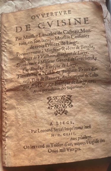 C’est en feuilletant un ancien ouvrage culinaire conservé à Liège, en Belgique, que cette recette a refait surface. Elle figurait autrefois dans la bibliothèque du Cardinal de Liège et fut rédigée par Lancelot de Casteau, maître cuisinier des princes-évêques de la ville. Publié en 1604, ce recueil témoigne d’un savoir-faire gastronomique raffiné, à la croisée des traditions médiévales et des prémices de la cuisine moderne.